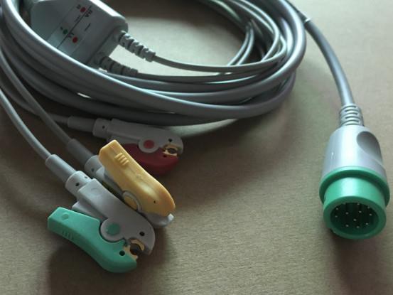 Mindray ECG Cable 12-pin connector for BeneView T5, T8, 3lead ecg cable,IEC/AHA,clip/Snap